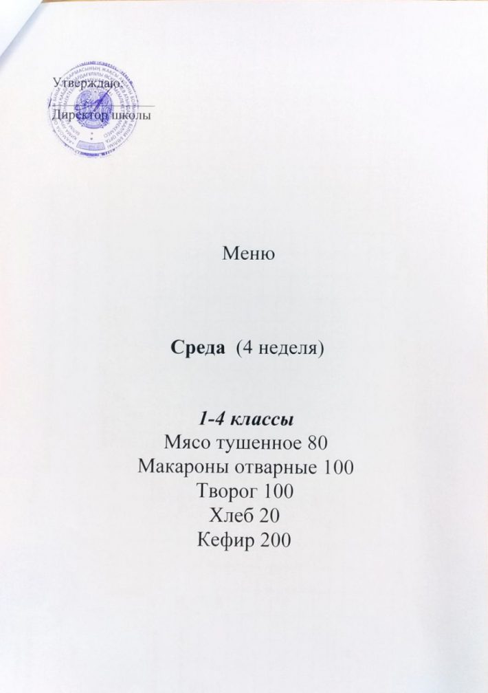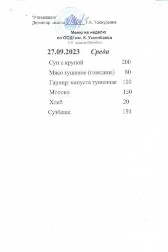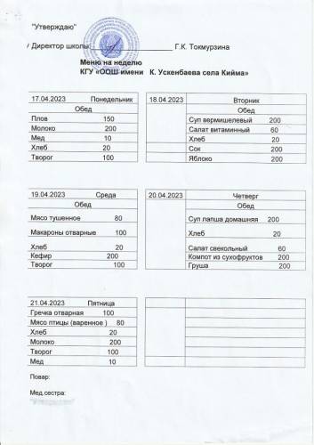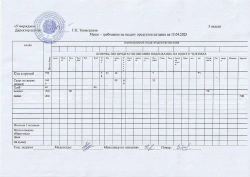 Мәзір-23.02.2023 азық-түлік өнімдерін беруге қойылатын талап