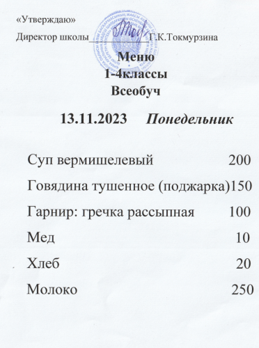 Мәзір-13.02.2023 азық-түлік өнімдерін беруге қойылатын талап