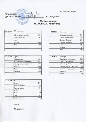 Мәзір-01.03.2023 азық-түлік өнімдерін беруге қойылатын талап
