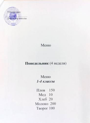 Мәзір-17.02.2023 азық-түлік өнімдерін беруге қойылатын талап