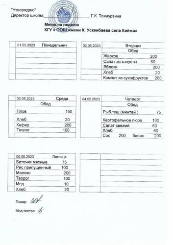 Мәзір-07.03.2023 азық-түлік өнімдерін беруге қойылатын талап