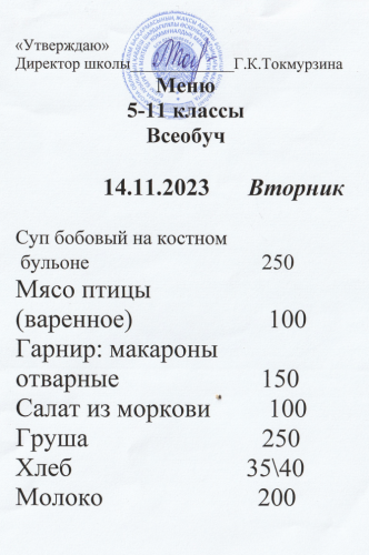 5-11 сыныптарға арналған бүгінгі мәзір