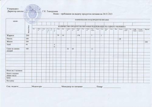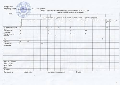 Мәзір-07.03.2023 ж. азық-түлік өнімдерін беруге қойылатын талап