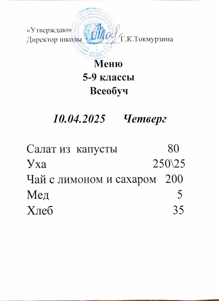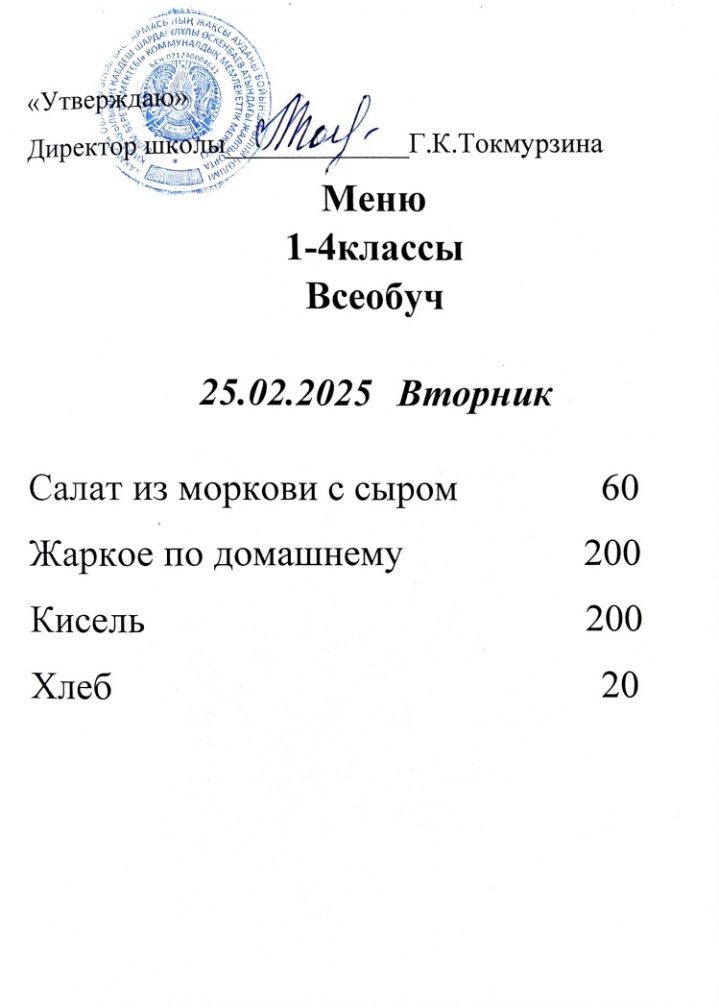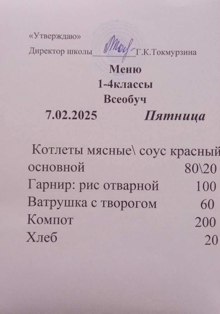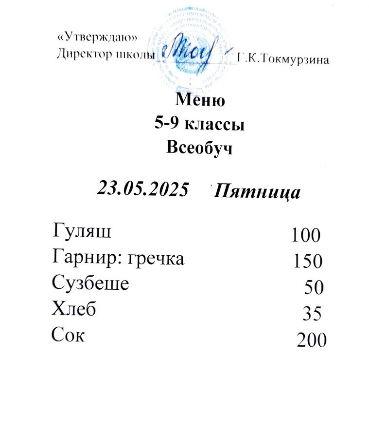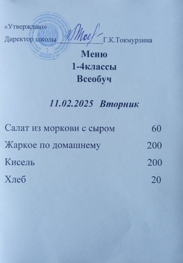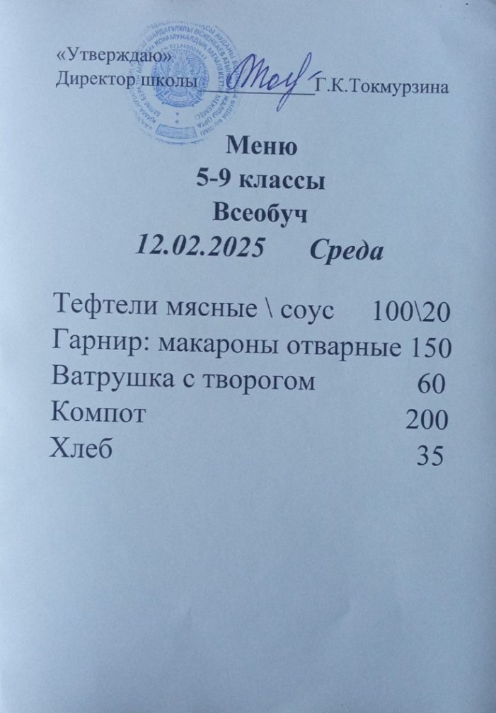 Бүгінгі мәзір