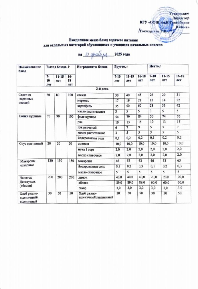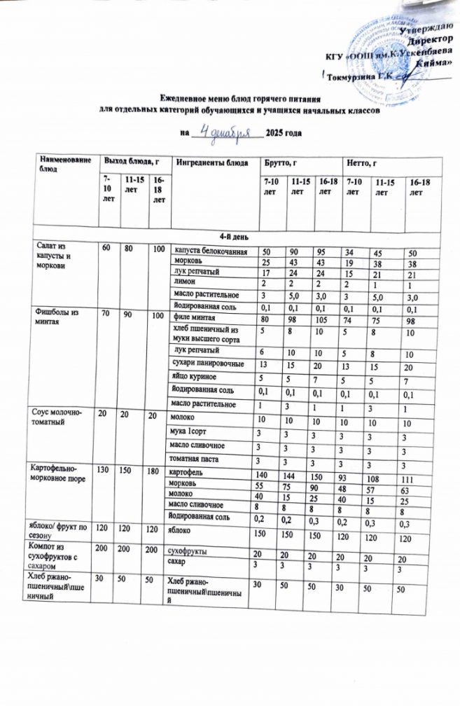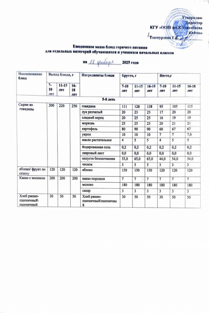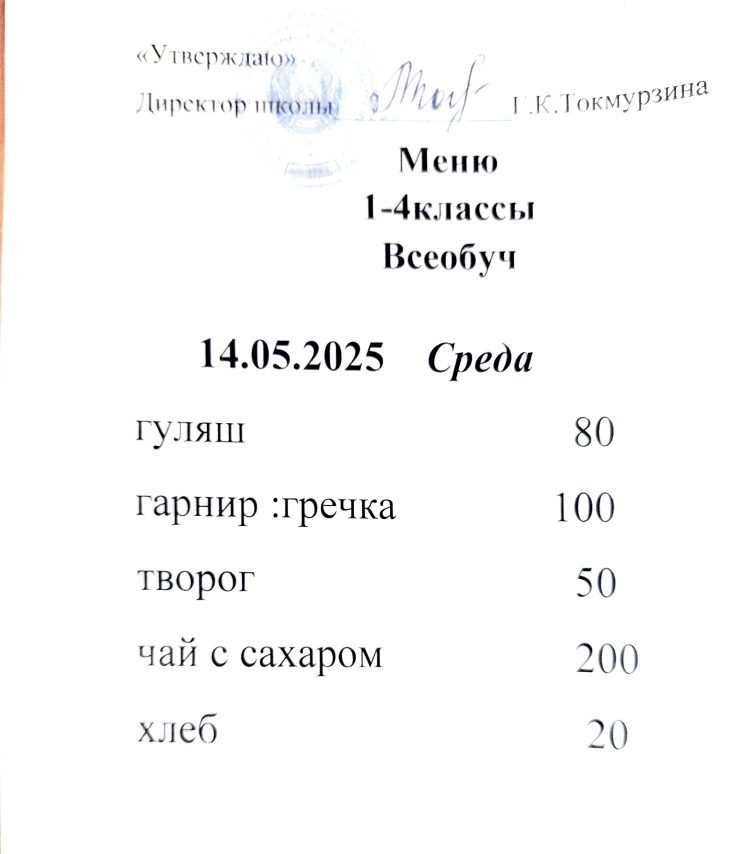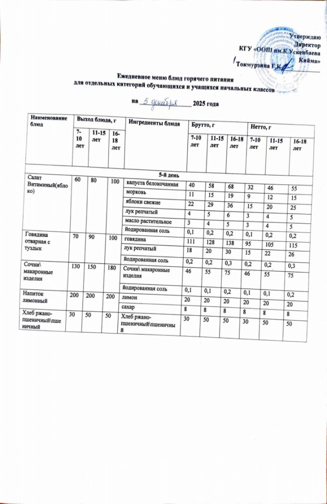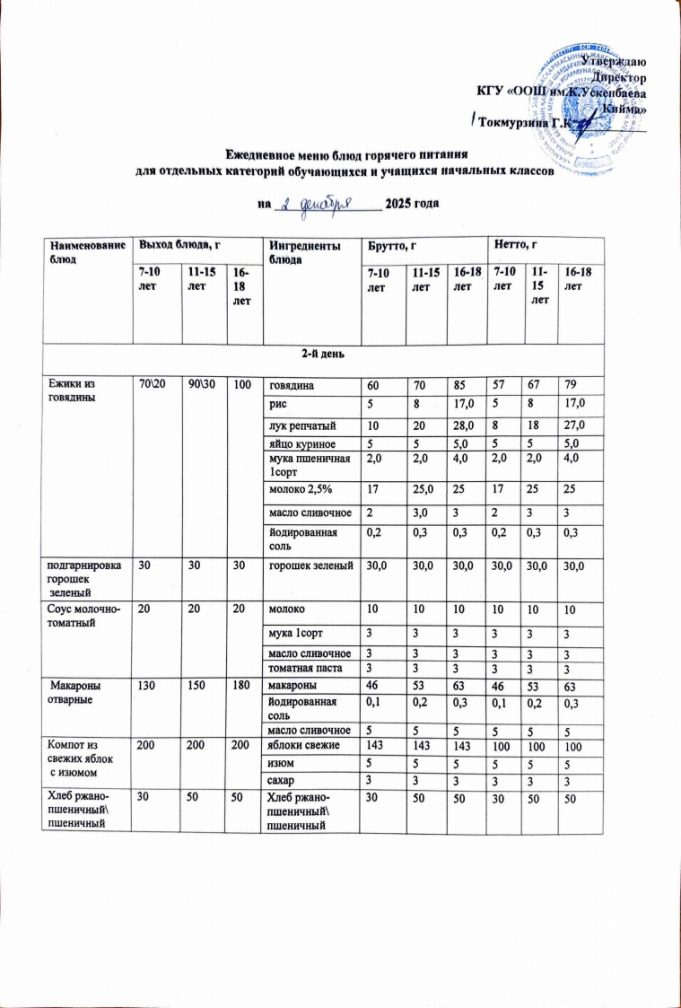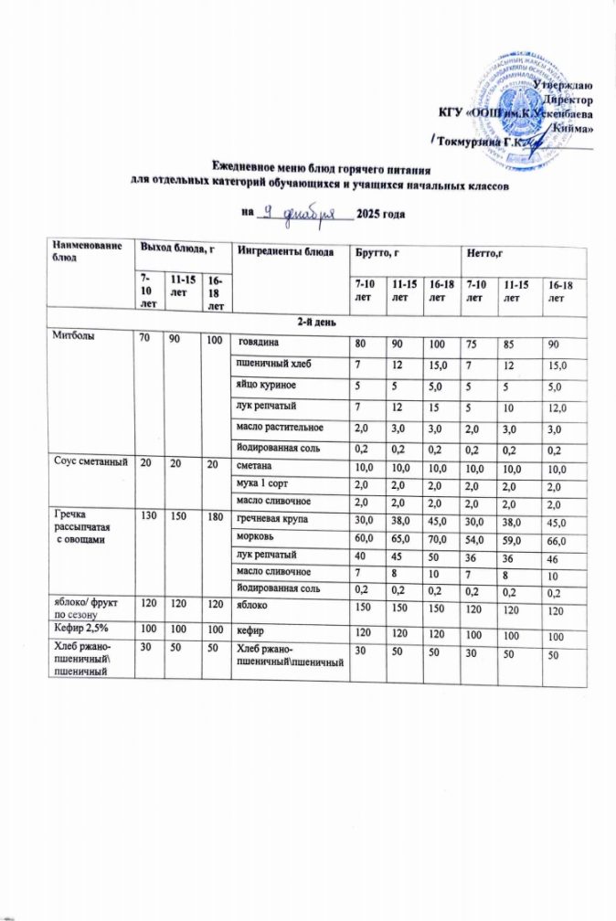 Бүгінгі мәзір