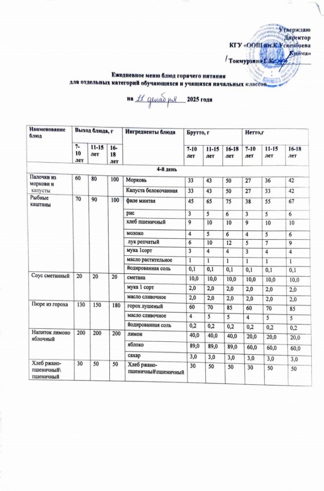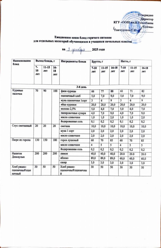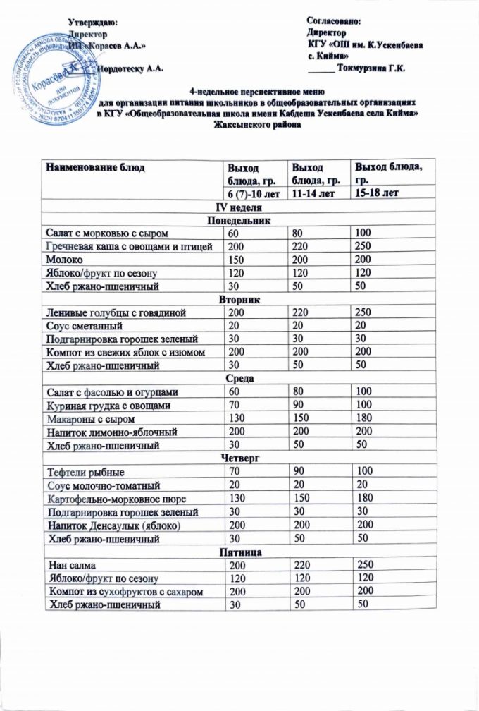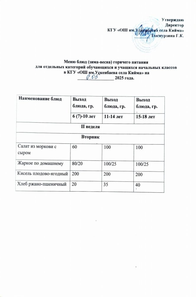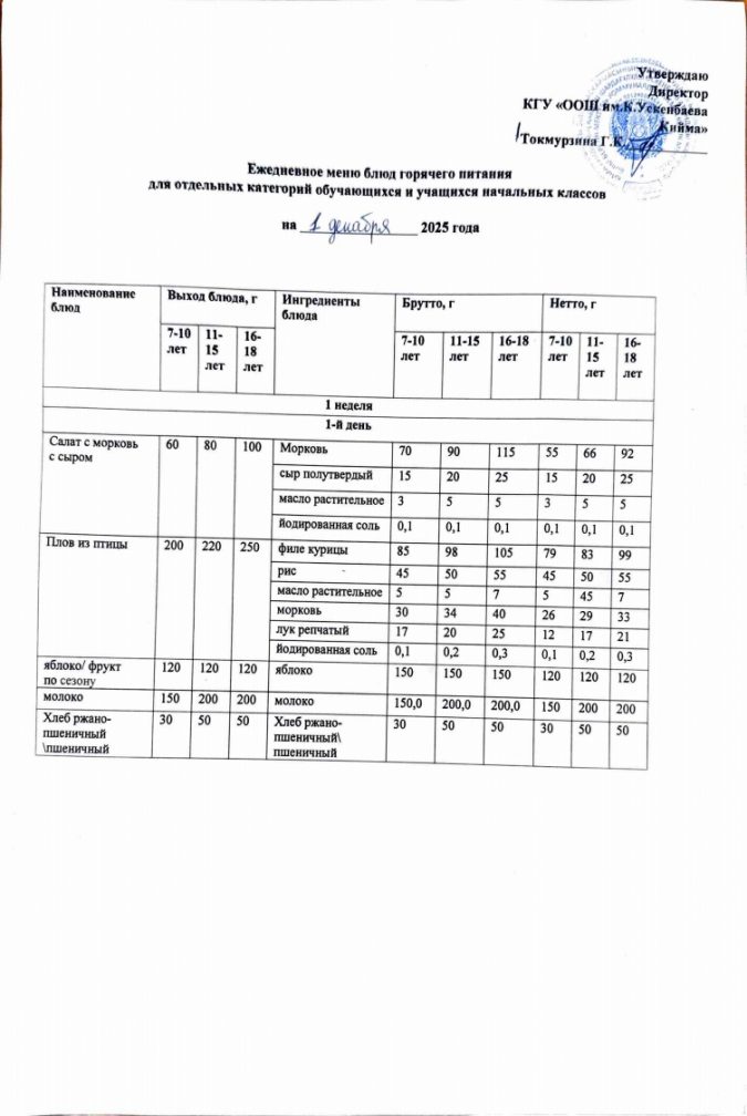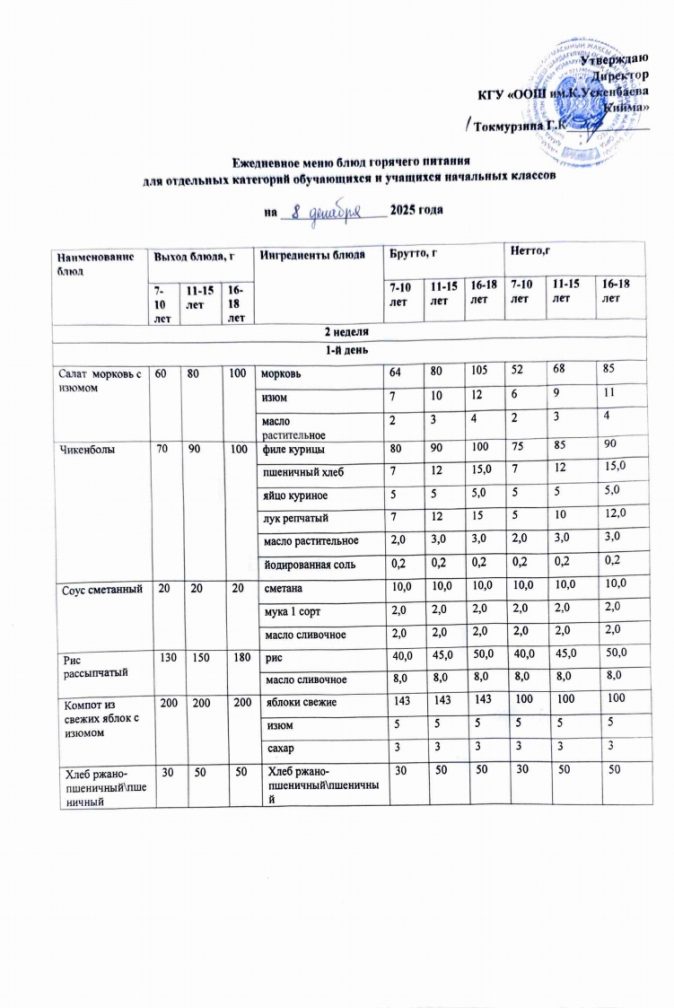 Бүгінгі мәзір