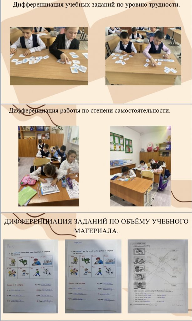 Педагогикалық кеңестің күн тәртібі бойынша ағылшын тілі пәнінің мұғалімі Жакен Күнімжан Ерланқызы «Дифференциалды оқыту – ағылшын тілі сабақтарында білім сапасын арттыру құралы ретінде» тақырыбында баяндама жасады. Мұғалім ағылшын тілі сабақтарында сөйлеу әрекетінің түрлерін (оқылым, жазылым, айтылым, тыңдалым) дамытуға арналған бірнеше дифференциалды оқыту тәсілдерін көрсетті. 3,4,6 сынып оқушыларына арналған көрнекі және үлестірме материалдармен жұмыс жасау үлгілері көрсетілді. Сонымен қатар, Күнімжан Ерланқызы оқушылардың қызығушылығын арттырып, белгілі бір тақырыпты тиімді меңгеруге көмектесетін бірнеше пайдалы білім беру платформаларымен бөлісті.